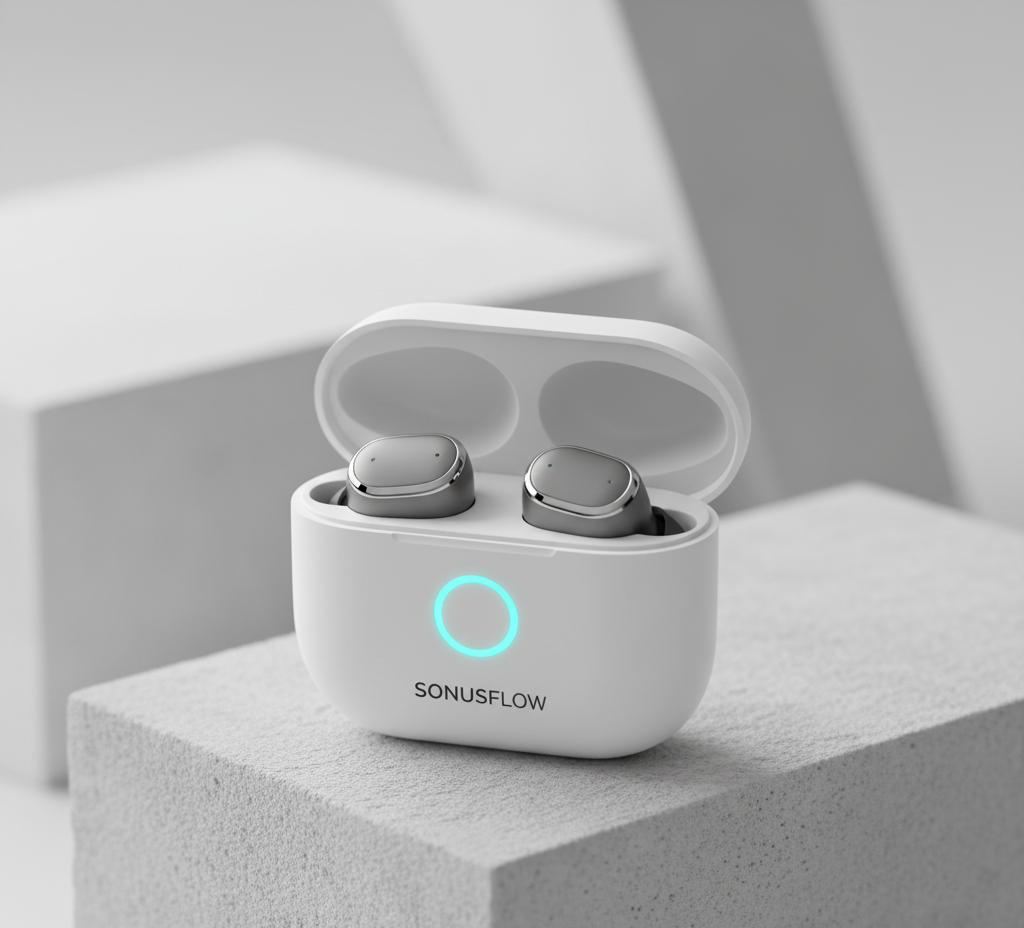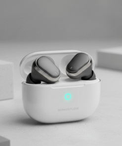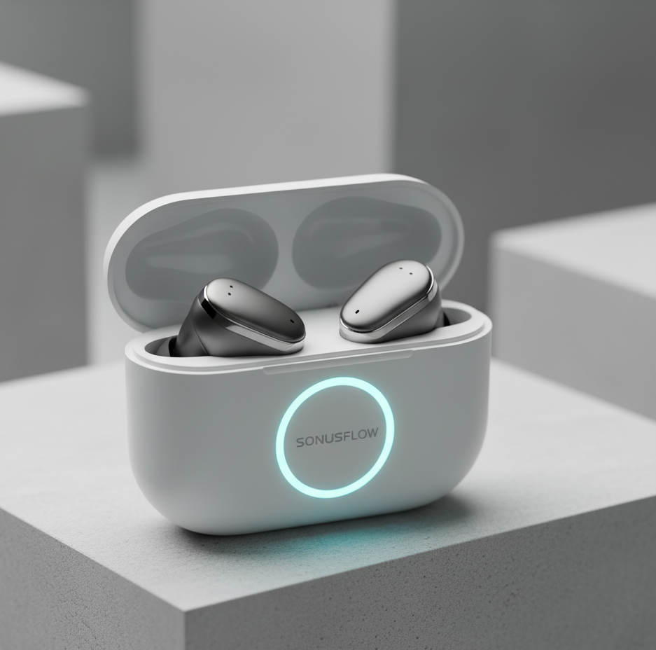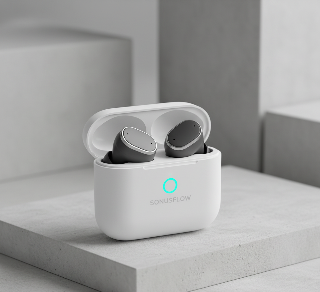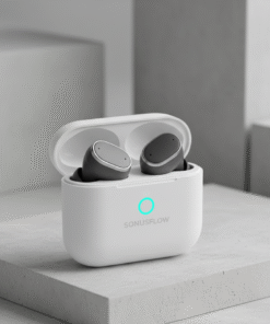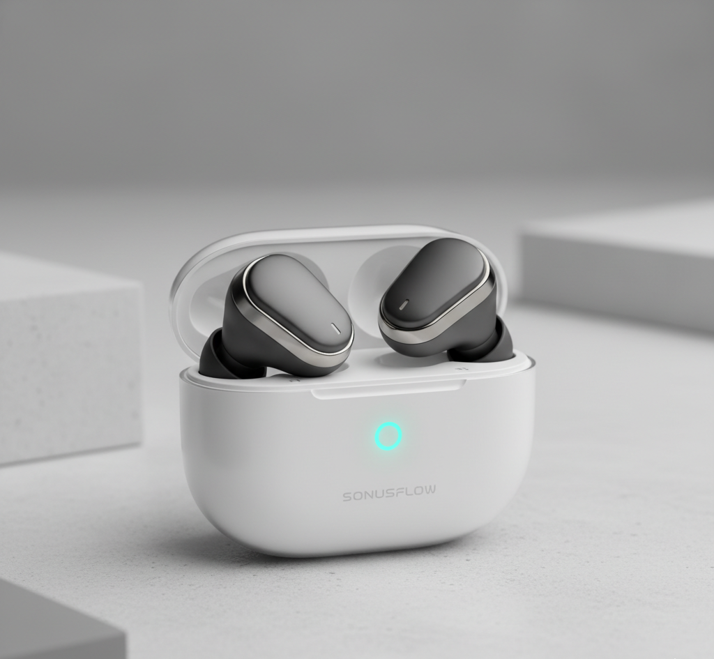 El diseño ergonómico de SonusFlow ha sido meticulosamente optimizado para un ajuste seguro y cómodo, casi imperceptible, incluso durante largas horas de uso o actividad física. Construidos con materiales premium, son resistentes al sudor y las salpicaduras, lo que los hace ideales para cualquier estilo de vida. Además, incorporan controles táctiles intuitivos y micrófonos con cancelación de eco para llamadas cristalinas. Con SonusFlow, no solo escuchas tu audio, lo vives.