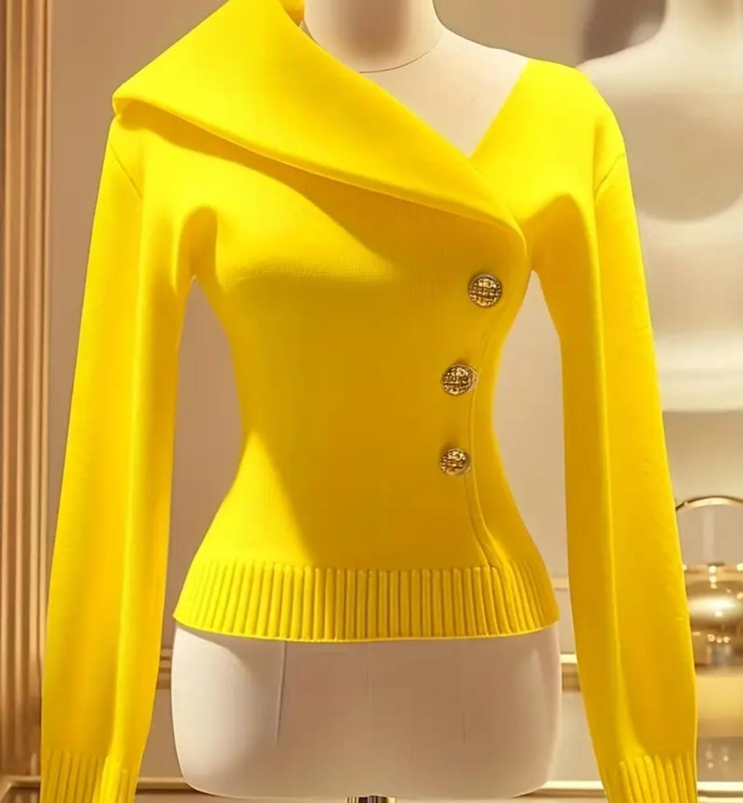 Suéter para invierno, elegante de cuello V, con detalles de botones falsos en diferentes colores, individual.